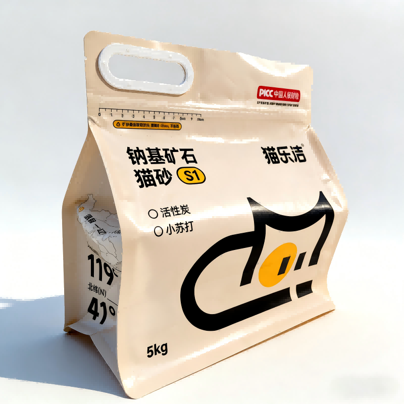 ရှစ်ဘက်စွန်း အလုံပိတ်ဖွဲ့စည်းပုံသည် အိတ်ကို တည်ငြိမ်ပြီး မတ်တတ်နေစေပြီး ထင်ရှားသော စင်ပြကွက်များအတွက် အကောင်းဆုံးဖြစ်သည်။ ၎င်းသည် တည်ငြိမ်သော stacking နှင့် အဆင်ပြေသော သိုလှောင်မှုကိုလည်း ကူညီပေးသည်။ ဇစ်လက်ကိုင်သည် လုံခြုံပြီး ယုံကြည်စိတ်ချရသော တံဆိပ်ကို ပံ့ပိုးပေးကာ အစိုဓာတ်နှင့် ဖုန်မှုန့်များ ထပ်ခါထပ်ခါ အဖွင့်အပိတ်လုပ်သည့်တိုင် အစိုဓာတ်နှင့် ဖုန်မှုန့်များ ဝင်ရောက်ခြင်းမှ ကာကွယ်ပေးပါသည်။ ထို့အပြင် အားဖြည့်ထားသော ပလတ်စတစ်လက်ကိုင်ဒီဇိုင်းသည် ကြောင်အမှိုက် 5 ကီလိုဂရမ်ကို လွယ်ကူစွာ ကိုင်တွယ်နိုင်စေကာ သုံးစွဲသူအတွေ့အကြုံကို တိုးမြင့်စေသည်။